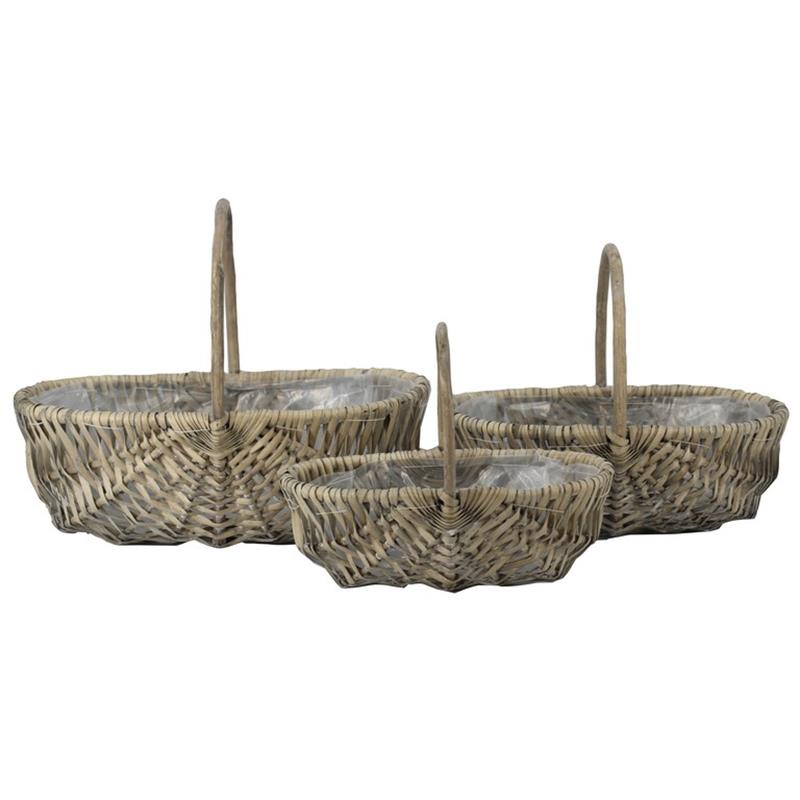 Eine schöne Ergänzung der Bela Arte-Serie von Floran ist dieses 3-teilige Set von Körben mit Henkel. Die Innenseite ist mit einer Kunststoffeinlage versehen. Die Körbe sehen auf dem Tisch oder auf dem Boden mit Pflanzen darin toll aus, aber wie wäre es, sie mit einer schönen Hängepflanze darin aufzuhängen?