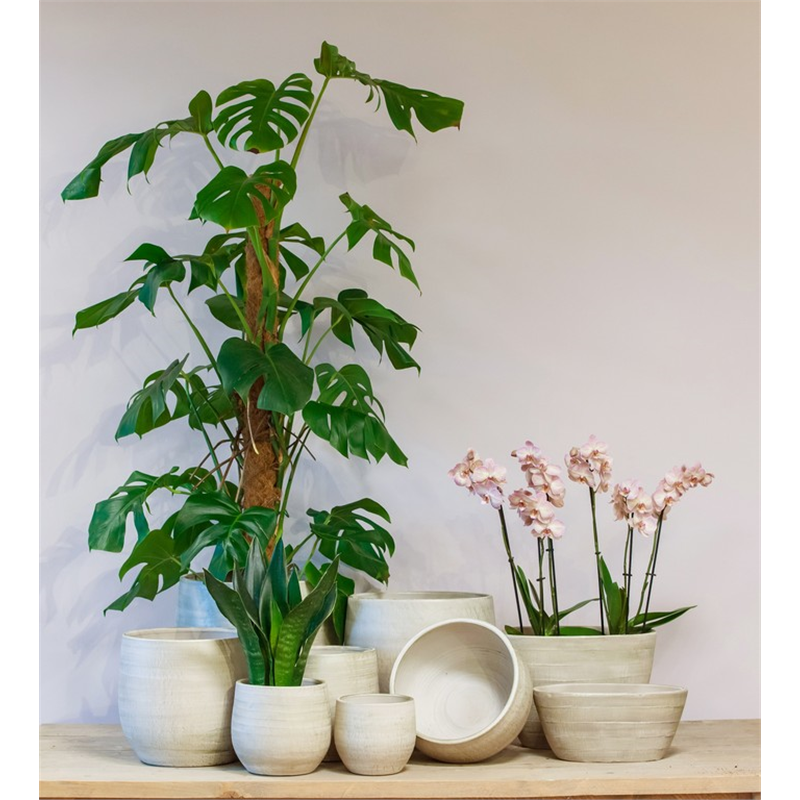 Die dekorative Serie Abby aus unserer Kollektion Bela Arte ist aus Keramik gefertigt und sieht auf einem Tisch, einem Schrank oder einer Fensterbank wunderschön aus. Diese Serie ist in verschiedenen Formen erhältlich, wodurch sie sich sehr gut für die Kombination verschiedener Pflanzen eignet. Stellen Sie die Kombination zusammen, die zu Ihrem Stil und Ihrer Einrichtung passt! Die Keramiktöpfe von Bela Arte haben ein schönes Design, bei dem die Qualität im Mittelpunkt steht. Dieser Blumentopf zeigt dies durch die Oberfläche mit subtilen Rillen, die für ein natürliches Aussehen sorgen.