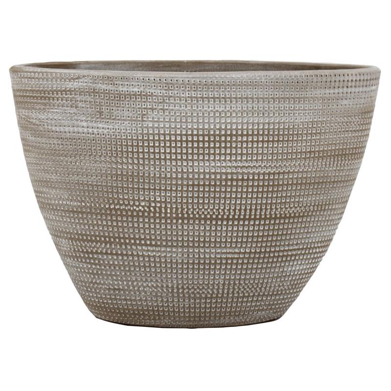 Verleihen Sie Ihrer Einrichtung einen luxuriösen Look mit einem Topf aus der Dali-Serie von Floran. Dieser runde Topf ist der perfekte Blickfang in Ihrem Interieur. Der Topf hat eine schöne taupe Farbe und lässt sich daher gut mit anderen Töpfen kombinieren. Das künstlerische Muster macht den Topf einzigartig. Es wird empfohlen, eine Pflanze zu wählen, deren Topfgröße kleiner ist als die Topfgröße des Blumentopfs. Dieser Blumentopf ist möglicherweise nicht ganz wasserdicht. Um sicher zu gehen, füllen Sie den Blumentopf mit einem Floran-Einsatz oder stellen Sie den Blumentopf auf einen Untersetzer. Die Dali-Serie besteht aus 6 Topfgrößen, 2 Vasengrößen und 2 Ovalgrößen.