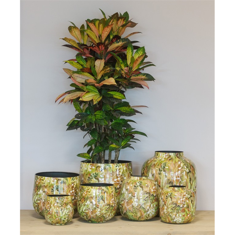 Chic and smooth that is the Amalfi metal series from the pen of Jet Home, another beautiful addition to Floran's Bela Arte collection. With a tasteful design and a touch of nature, complete with a lush print of leaves in autumn, it stands its ground in a contemporary living style. As Amalfi is made of metal, we recommend using one of our inset covers. This way, you make the pot 100% waterproof and it will not oxidise. This way, you can even use Amalfi as a flower vase!