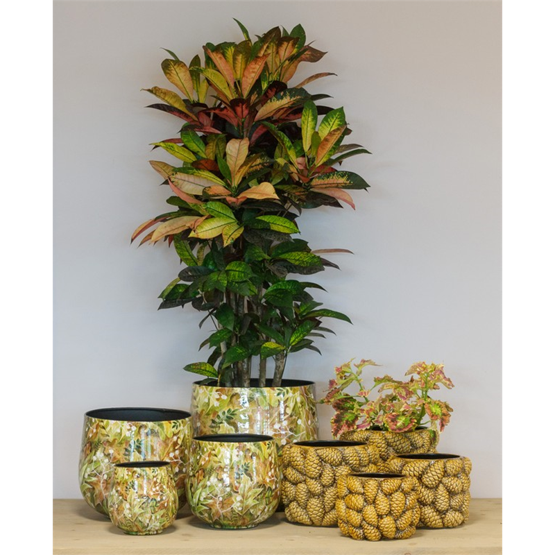 Chic and smooth that is the Amalfi metal series from the pen of Jet Home, another beautiful addition to Floran's Bela Arte collection. With a tasteful design and a touch of nature, complete with a lush print of leaves in autumn, it stands its ground in a contemporary living style. As Amalfi is made of metal, we recommend using one of our inset covers. This way, you make the pot 100% waterproof and it will not oxidise. This way, you can even use Amalfi as a flower vase!