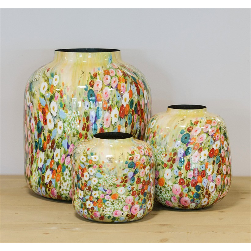 Discover luxury home items printed with extraordinary illustrations by Jet home. The lovely design on the metal series Sicily symbolises timelessness and the heart-warming, mild colours reinforce Jet's premise. Sultry, friendly tones, with subtle colours make the palette friendly and full of character. The prints of Sicily were specially drawn by Jet for Floran's Bela Arte collection. As Sicily is made of metal, we recommend using one of our inset covers. This way, you make the pot 100% waterproof and it will not oxidise. This way, you can even use Sicily as a flower vase!