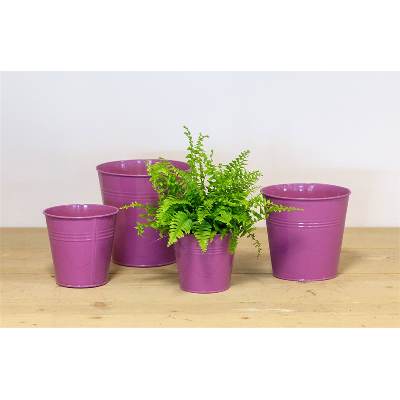 What a lovely addition to Floran's Bela Arte collection, this beautifully tapered zinc pot with 3 grooves all around. Handy for in the house or garden, also very pretty with plants. When using the bucket as a flower pot outside, make some holes at the bottom so that excess water can drain away. Also put some hydro grains or potsherds on the bottom before filling the bucket with potting soil. Pot bordeaux zinc is available in various colours.