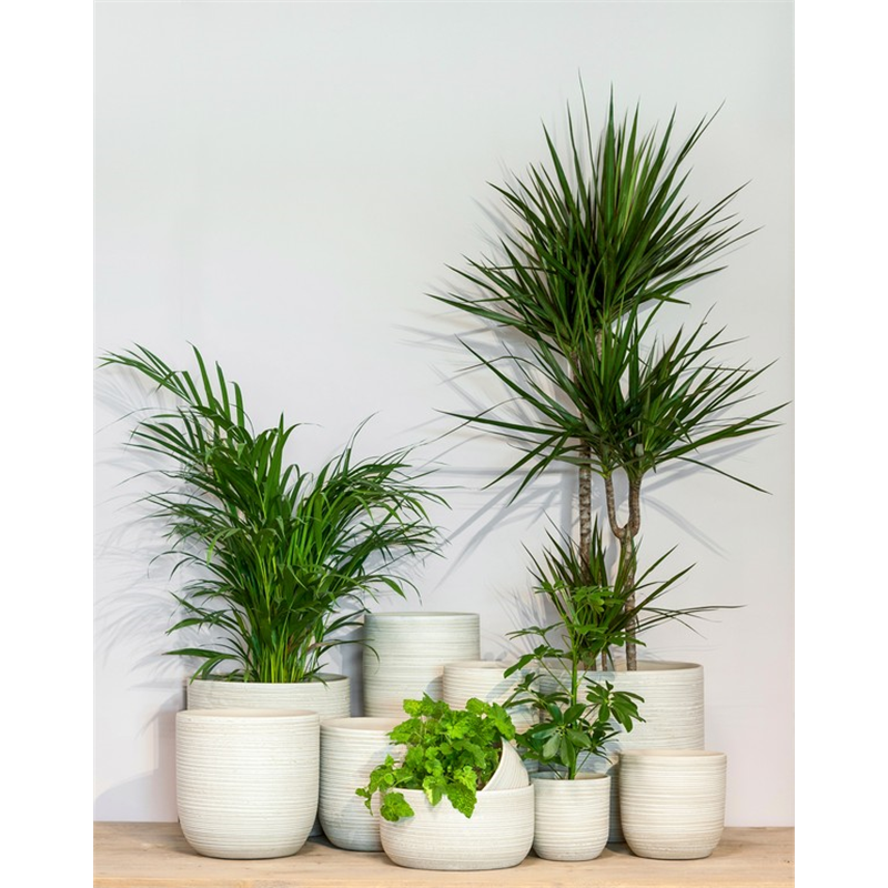 Plants add more colour to your home. Some plants even have an air-purifying effect. In the Noah flower pot from Floran's Bela Arte collection, your plants will look perfect. The flower pot is cream and made of terracotta. The pot is round and has a relief of horizontal lines.The flower pot may not be completely waterproof. To be sure, fill it with one of our inset covers.