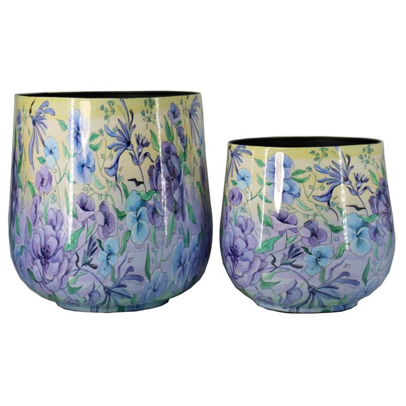 La serie metálica ampliada Milos de la colección Jet Home de Floran desprende frescura y energía. Los colores azul/morado combinados con el amarillo pálido dan a Milos un aspecto moderno y fresco. Un sinfín de posibilidades para hacer brillar el interior de cada uno con las macetas, jarrones, cuencos, mesas y bandejas Milos.