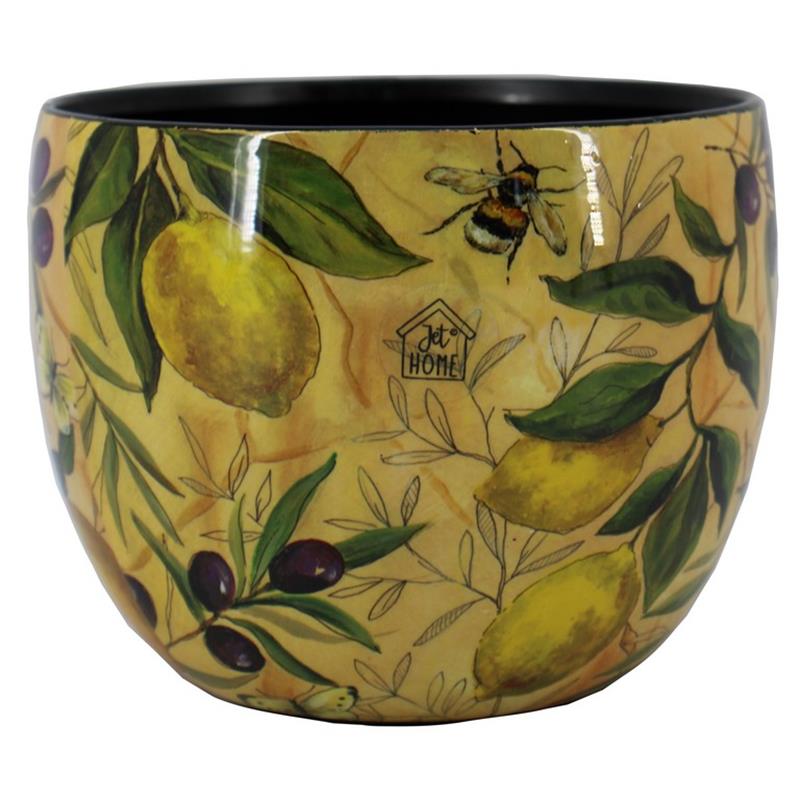 La serie Patmos, de vivos colores, de la colección Jet Home de Floran, está decorada, entre otras cosas, con limones amarillos, que recuerdan el verano, los días soleados y la limonada fresca. Un bonito complemento de los limones son las aceitunas, que en algunas culturas simbolizan la paz y la felicidad. A esto se añade la abeja ocupada, que representa el amor, la fuerza y la sabiduría. En resumen, la serie Patmos es perfecta para añadir un toque alegre a su interior, es una fiesta para los ojos con su alegre diseño. Además, esta serie está hecha de metal y probablemente no sea completamente impermeable. Para evitar la oxidación, le recomendamos que utilice nuestras fundas insertables.