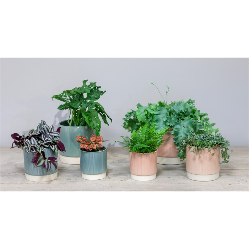 Flavio de Bela Arte es adecuado para cactus y mini plantas hasta D16. El acabado esmaltado y las líneas verticales dan a la maceta un aspecto radiante. La maceta está hecha de cerámica. Disponible en varios tamaños y diferentes colores. Debido a la gran variación en la serie, es muy agradable combinar los diferentes tamaños y colores.