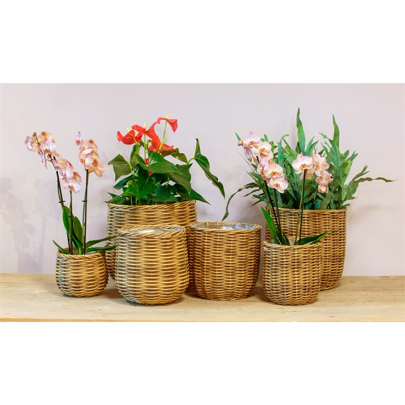 Le set de paniers Montreal de la collection Bela Arte de Floran est fabriqué en rotin naturel, ce qui lui confère un aspect chaleureux et intemporel. Vous pouvez y mettre vos plus belles plantes en pot. L'intérieur du panier est recouvert d'une doublure en plastique qui empêche les fuites. Vous pouvez donc y mettre directement de la terre et une plante. Les dimensions indiquées sont les dimensions extérieures, les dimensions intérieures peuvent donc être légèrement inférieures. Il est recommandé de choisir une plante dont le pot est plus petit que celui du panier. Le set de paniers peut également être utilisé pour ranger vos affaires. En bref, un ensemble de paniers pratiques et décoratifs. Si vous n'avez rien à ranger, les paniers peuvent être emboîtés les uns dans les autres pour gagner de la place.
