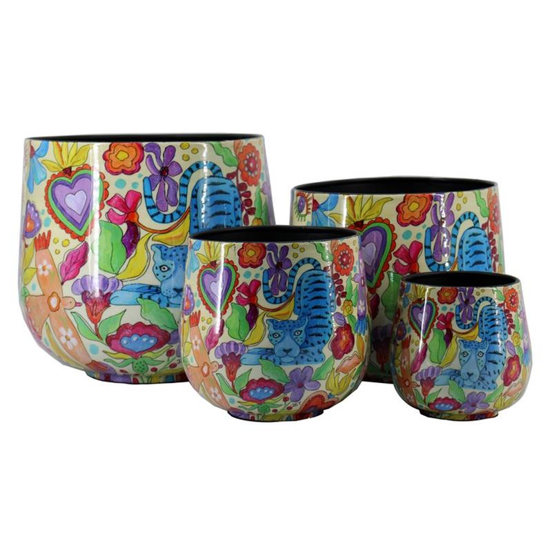 Voeg iets bijzonders toe aan je interieur met de metalen serie Lipari uit de Jet Home collectie van Floran. Deze serie is funny, vrolijk, kleurrijk en door het mooie blauwe luipaard ook leuk voor in een botanisch interieur of zelfs om de natuur op de kinderkamer te brengen door middel van potten, bijzettafels of dienblad.