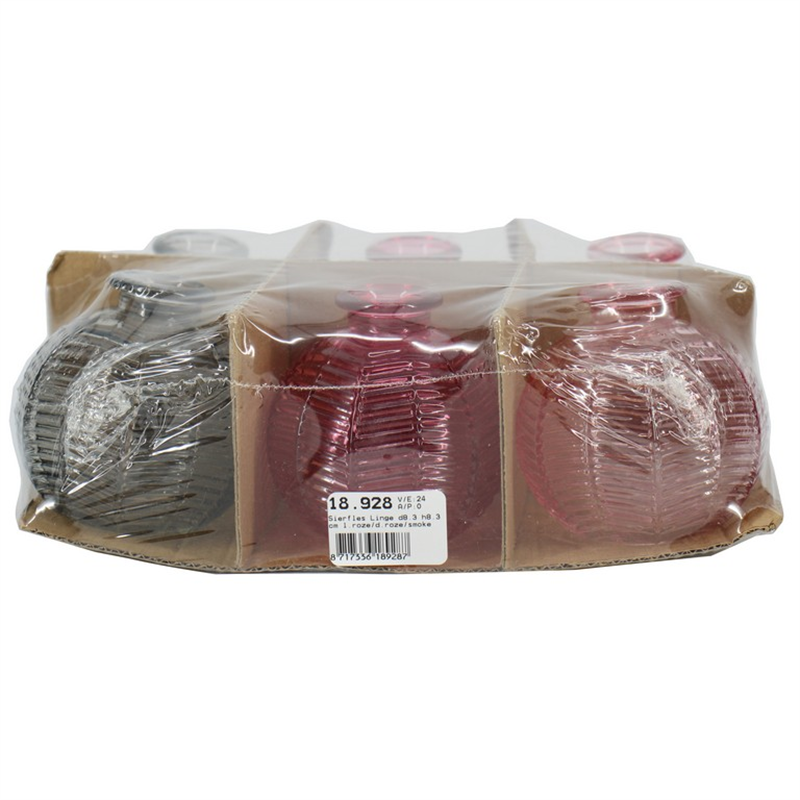 De sierflesjes Linge uit de Bela Arte collectie van Floran zijn een echte eye-catcher in elk interieur. De flesjes zijn in glas uitgevoerd en als assorti in de kleuren lichtroze, donkerroze en smoke verkrijgbaar. Ze zijn als assorti met 6 in een blister verpakt.