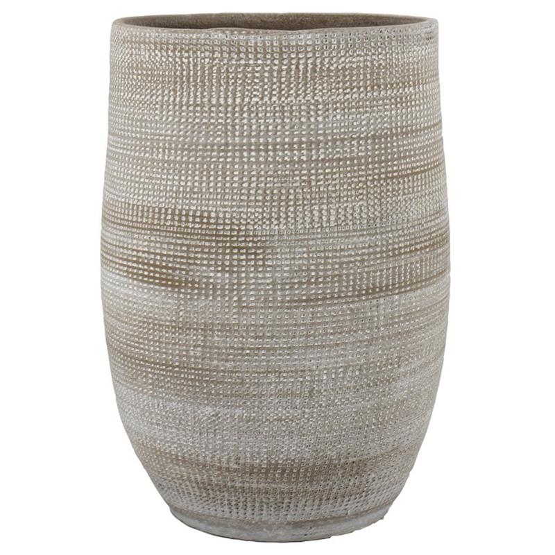 Geef je interieur een luxe uitstraling met een pot uit de serie Dali van Floran. Deze ronde pot is de perfecte blikvanger in je interieur. De pot heeft een mooie taupe kleur en dus mooi te combineren met andere potten. Het artistieke patroon maakt de pot uniek. Het is aan te bevelen een plant te kiezen die een kleinere potmaat heeft dan de potmaat van de bloempot. Deze bloempot is mogelijk niet volledig waterdicht. Vul daarom voor de zekerheid de bloempot met een inzethoes van Floran of zet de bloempot op een schotel. De serie Dali bestaat uit 6 maten potten, 2 maten vazen en 2 maten ovaal.