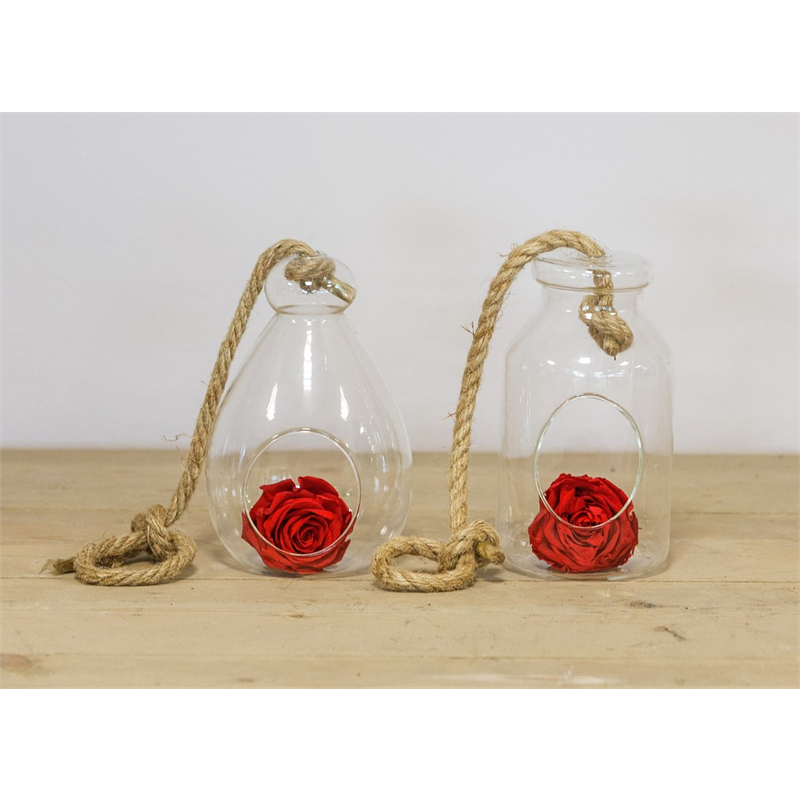 Dieses Dekoglas mit Seil ist ideal für die kleinsten Hängepflanzen.