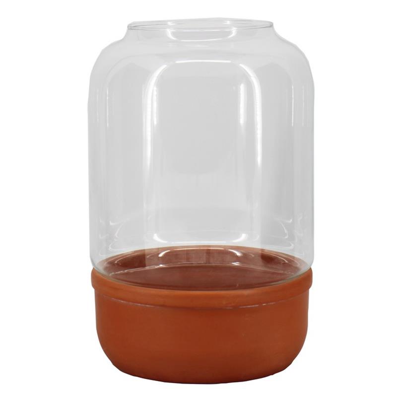 Neu im Bela Arte-Sortiment von Floran sind vier verschiedene Gläser mit Terrakotta-Schale in unterschiedlichen Größen und Ausführungen, bestehend aus einem unglasierten Tontopf. Vervollständigen Sie die schöne Kombination aus Glas und Terrakotta, indem Sie ein schönes Pflanzenarrangement darin gestalten