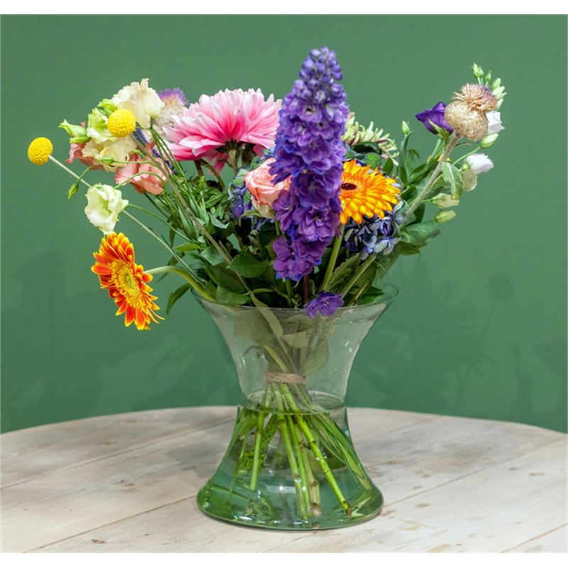 Dieser Artikel ist speziell für die Befüllung mit Blumen gedacht. Ob es sich um einen großen Strauß oder eine dezente Hängepflanze handelt, dieser Artikel wird Ihren Pflanzen gerecht. Das Öko-Glas von Floran wird aus recyceltem Glas hergestellt, dem Glas, das jeder zum Altglascontainer bringt. Da recyceltes Glas immer ein wenig verunreinigt ist, kann man einige Unregelmäßigkeiten sehen, die jedes Stück einzigartig machen. Außerdem ist dieses Glas nicht ganz klar und scheint einen blaugrünen Schimmer zu haben. Ist es nicht großartig, wie dieser Prozess funktioniert? Kein Abfall und schöne, brauchbare Produkte!