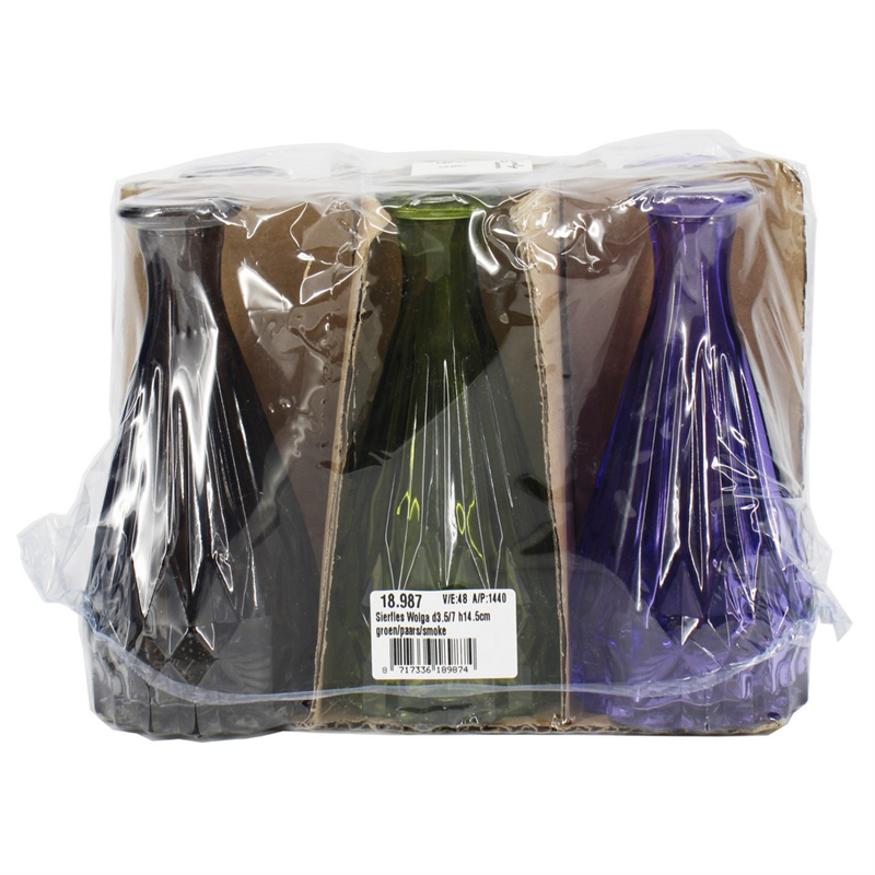 The bottles of Volga from Floran are distinctive because of their shapes, in the beautiful color nuances of green, purple and smoke, with the Volga you can make any house even more beautiful in an instant. Volga has dimensions D3.5/7 H14.5cm