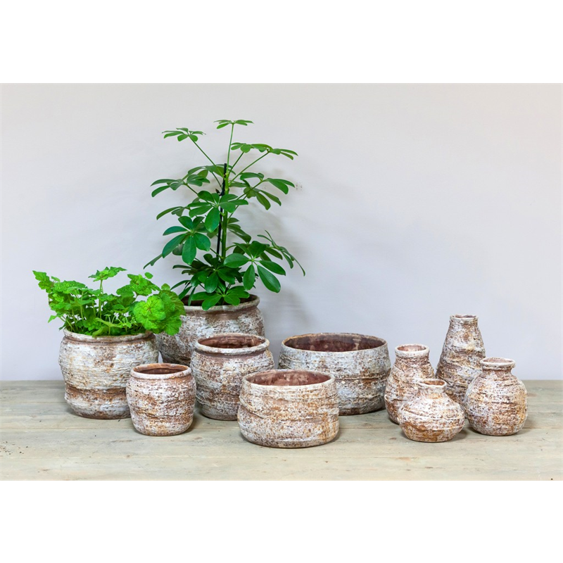 La serie Tampere de la colección Bela Arte de Floran recibió este nombre por una razón. Al igual que el paisaje finlandés, es variada y moldeada. El color blanco envejecido hace que la estructura de las macetas, cuencos, jarrones y botellas destaque muy bien. En resumen, vacíos o llenos, llaman la atención en cualquier interior.