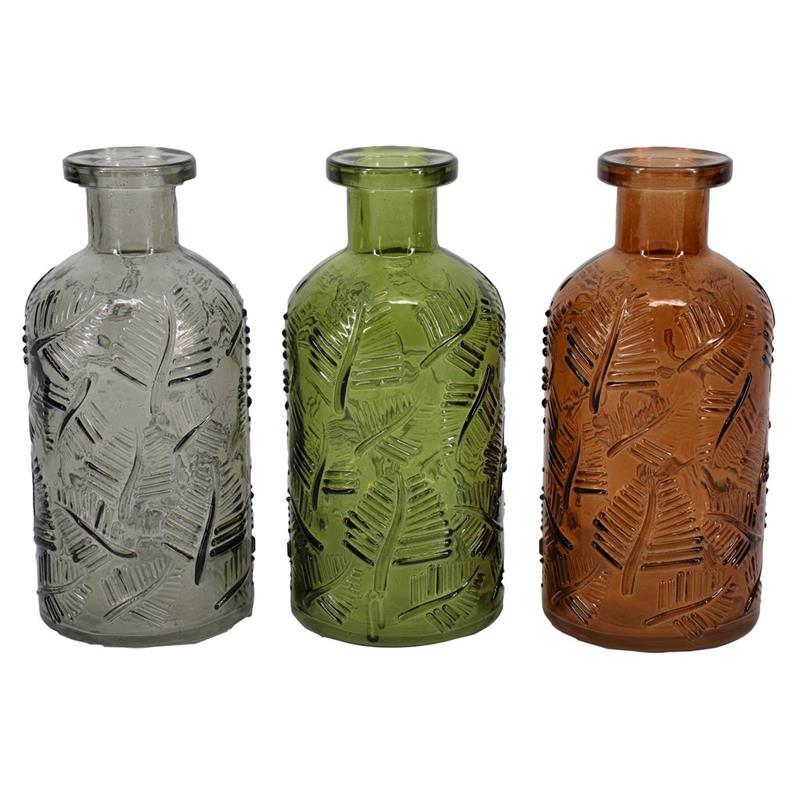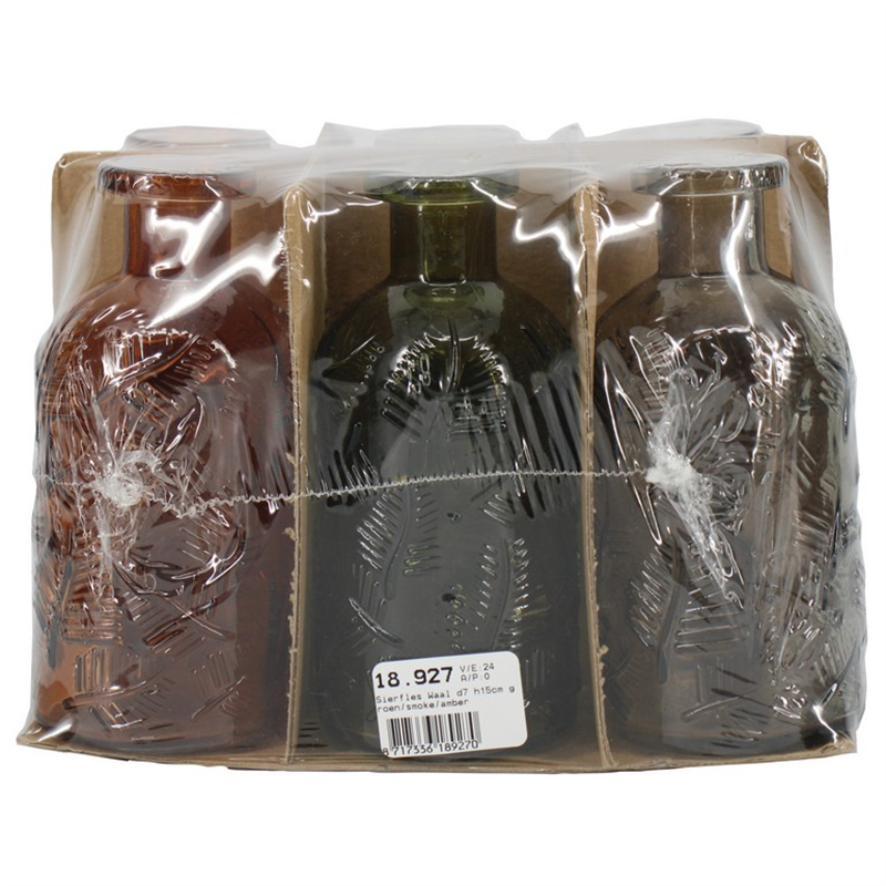 Las botellas decorativas Waal de la colección Bela Arte de Floran llaman la atención en cualquier interior. Las botellas son de cristal y están disponibles en colores verde, ahumado y ámbar. Se presentan en envases surtidos de 6 unidades.