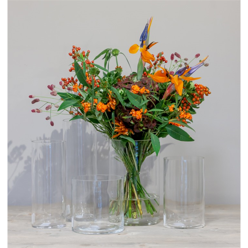 El jarrón cilíndrico siempre viene bien. Este jarrón tiene un diseño elegante y redondo. Con unas medidas de 12,5 cm de fondo y 12,5 cm de alto, este cristal tallado en frío sabe encontrar su sitio en cualquier interior. Ideal para tener en casa cuando te sorprenden con un ramo de flores, o simplemente, cuando compras un ramo para ti. Los jarrones cilíndricos también están disponibles en muchos tamaños diferentes.