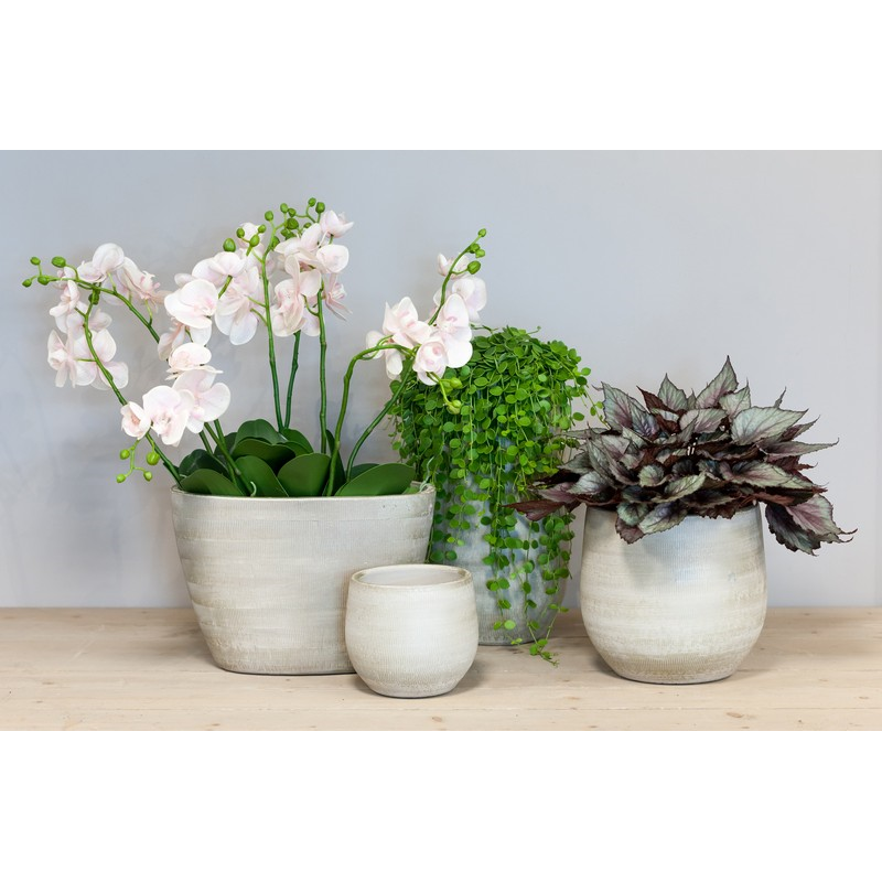 La elegante serie Abby de nuestra colección Bela Arte está hecha de cerámica y se verá hermosa en la mesa, armario o en el alféizar de la ventana. Esta serie está disponible en varias formas, lo que la hace muy adecuada para combinar diferentes plantas. ¡Haz la combinación que se adapte a tu estilo e interior! Las macetas de cerámica de Bela Arte tienen un hermoso diseño donde la calidad es central. Con esta maceta, esto es visible en el acabado con ranuras sutilmente aplicadas que brindan un aspecto natural.