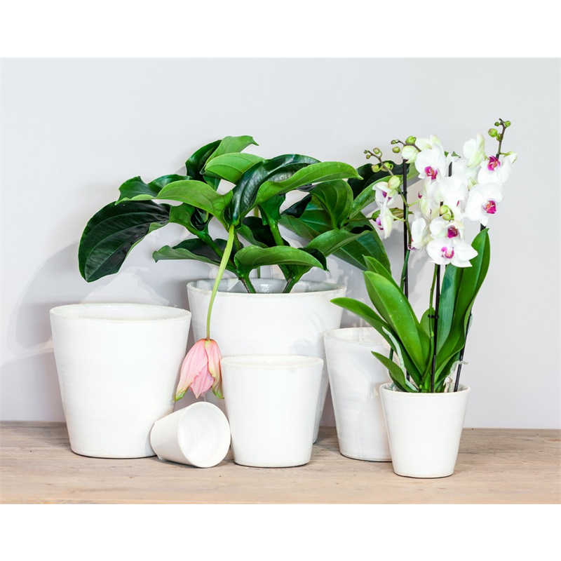 Dale un aire fresco a tu interior con la elegante maceta Luz de la colección Bela Arte de Floran. El diseño único y el refinado relieve del borde superior confieren a esta maceta un aspecto moderno. El radiante color blanco de la maceta le da un toque refrescante, perfecto para que tus plantas destaquen. Deje que sus plantas de interior favoritas brillen en esta maceta, ¡donde destacarán sus colores! Gracias a su estilo versátil, Luz encaja sin esfuerzo tanto en interiores modernos como clásicos, permitiéndole variar infinitamente con la decoración y la elección de plantas. Luz tiene una forma ampliamente acampanada y está disponible en varios tamaños y colores.
