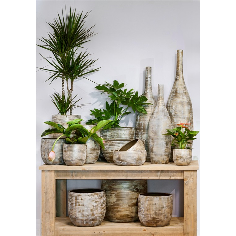 Con esta bonita maceta Funchai de la colección Bela Arte de Floran, lucirás mucho mejor tus plantas y harás que un lugar sea totalmente personal. Por ejemplo, juegue con diferentes alturas, colores y motivos para crear su propio ambiente único. El acabado dorado y el uso de diferentes colores confieren a este robusto ejemplar un aspecto robusto que quedará bien en cualquier interior. Hay varias versiones de la maceta disponibles dentro de la serie Funchai. Puede colocarlas juntas para conseguir un conjunto impresionante, o distribuirlas por una habitación para crear unidad dentro de la estancia. La maceta está hecha de cerámica. Las macetas están hechas a mano, por lo que todas son únicas y pueden variar ligeramente en color y tamaño.