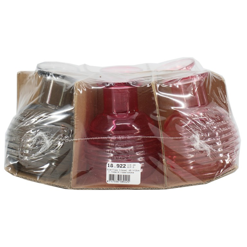 Les bouteilles décoratives IJssel de la collection Bela Arte de Floran attirent tous les regards dans un intérieur. Les bouteilles sont en verre et disponibles en assortiment en rose clair, rose foncé et fumé. Elles sont emballées par 6 dans un blister.