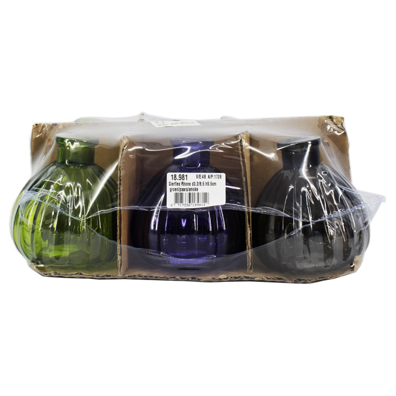 Le vase boule Theems de Floran mesure 3,5/8,5 H9,5 cm et est disponible dans un assortiment de 3 couleurs, vert/violet et fumé. Optez pour l'unité avec un ensemble de vases de la même couleur, ou optez pour un ensemble coloré en le combinant avec Rhône ou Theems.