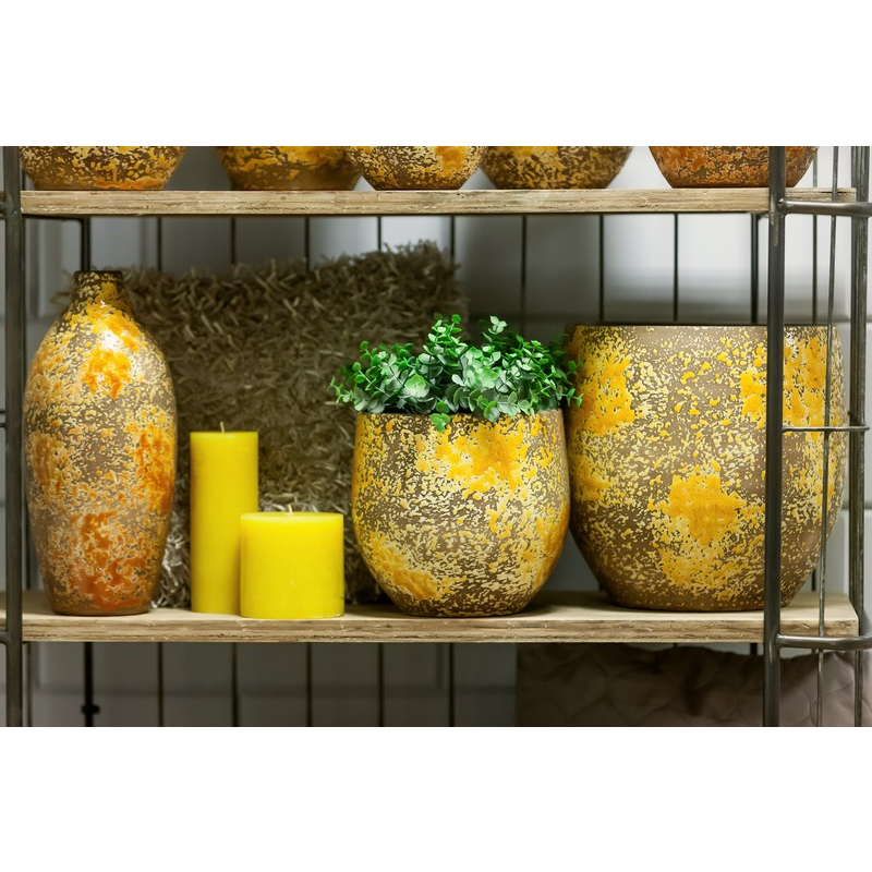 Ce pot pour plante en céramique Bela Arte Luuk crée un aspect remarquable et particulier dans votre intérieur en raison du motif tacheté à l'extérieur du pot. Le motif est appliqué en ocre bleu-vert et jaune sur fond marron, ce qui lui confère un peu l'apparence de la peau d'un caméléon. Le pot a une forme ronde. Les pots pour plante en céramique Bela Arte ont un superbe design et la qualité joue un rôle central. Avec eux, vous êtes sûr d'avoir de beaux pots dans votre intérieur. Le pot pour plante Bela Arte Luuk est disponible en différentes tailles et modèles.