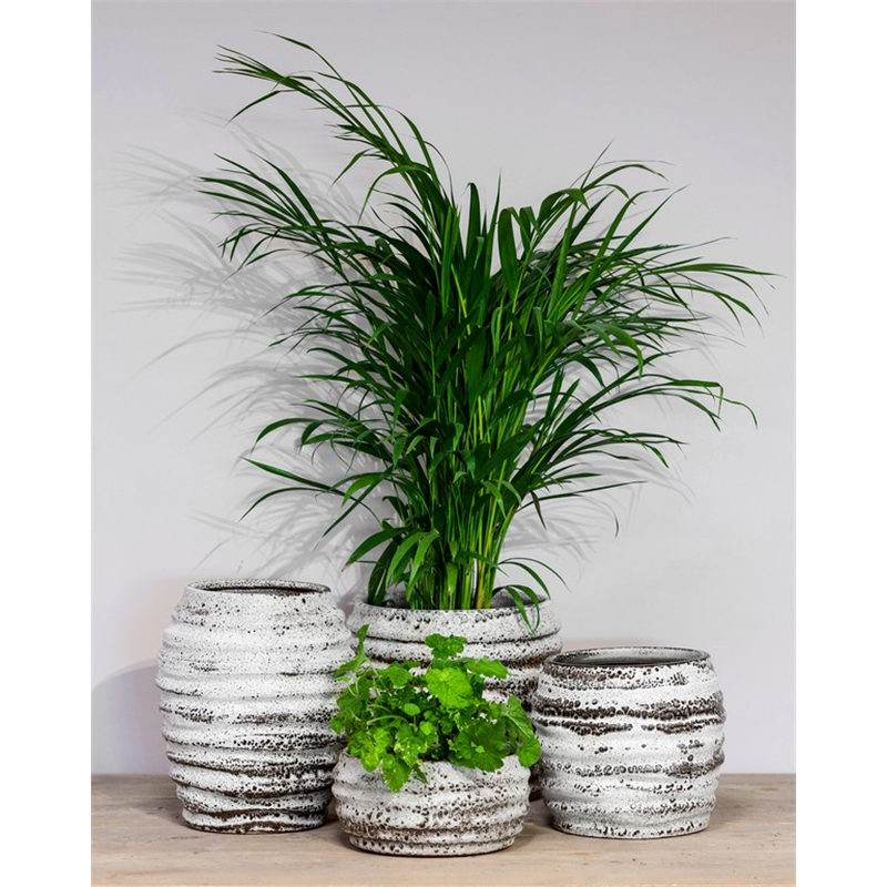 La série de formes rondes Vulcano de la collection Bela Arte de Floran attire immédiatement l'attention par sa finition inhabituelle. En effet, Vulcano a une texture unique qui crée un motif amusant. Ce motif est très agréable en combinaison avec la couleur terreuse et neutre mélangée à la couleur elle-même. Le pot s'intègre ainsi parfaitement à tout intérieur. Lui avez-vous déjà trouvé une place ? Vulcano est fabriqué en ciment et disponible en différentes couleurs et tailles. Le pot en terre Vulcano n'est peut-être pas totalement étanche, c'est pourquoi nous vous recommandons d'utiliser l'une de nos housses de protection.