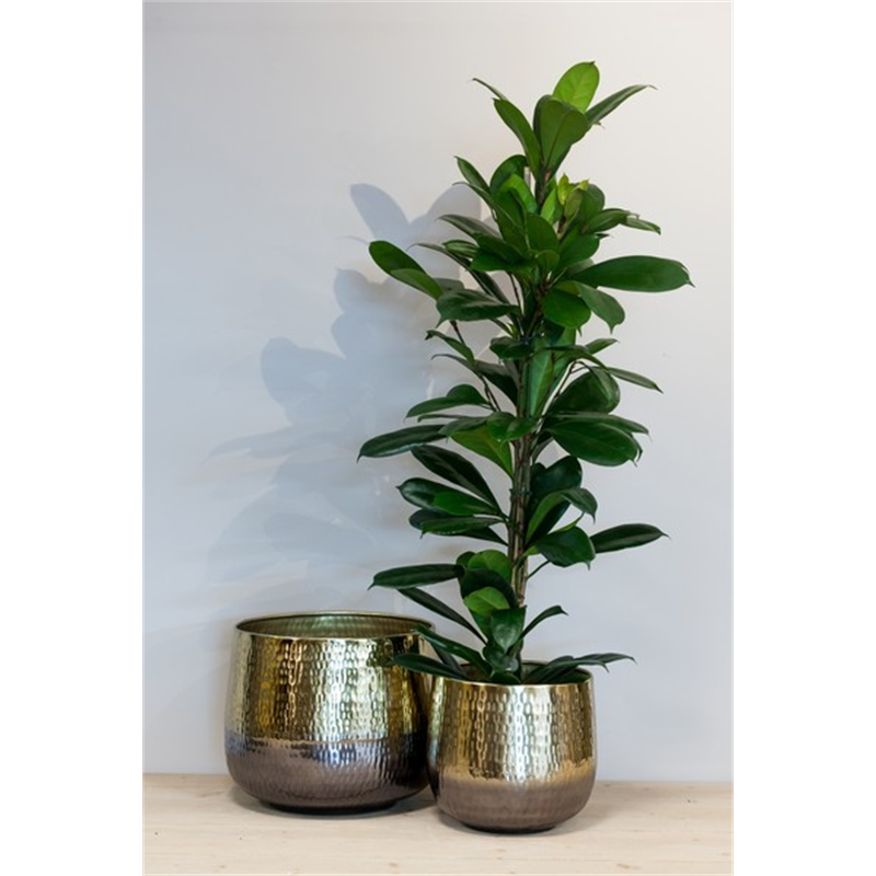 De vraag naar natuurlijke producten groeit, metaal hoort daar ook bij! De set Athene is niet alleen stoer maar ook elegant. Het voegt op verbindende wijze een sfeervol industriële touch toe aan de persoonlijke woonstijl. Om deze pot waterdicht te maken, verkopen wij ook inzethoezen.