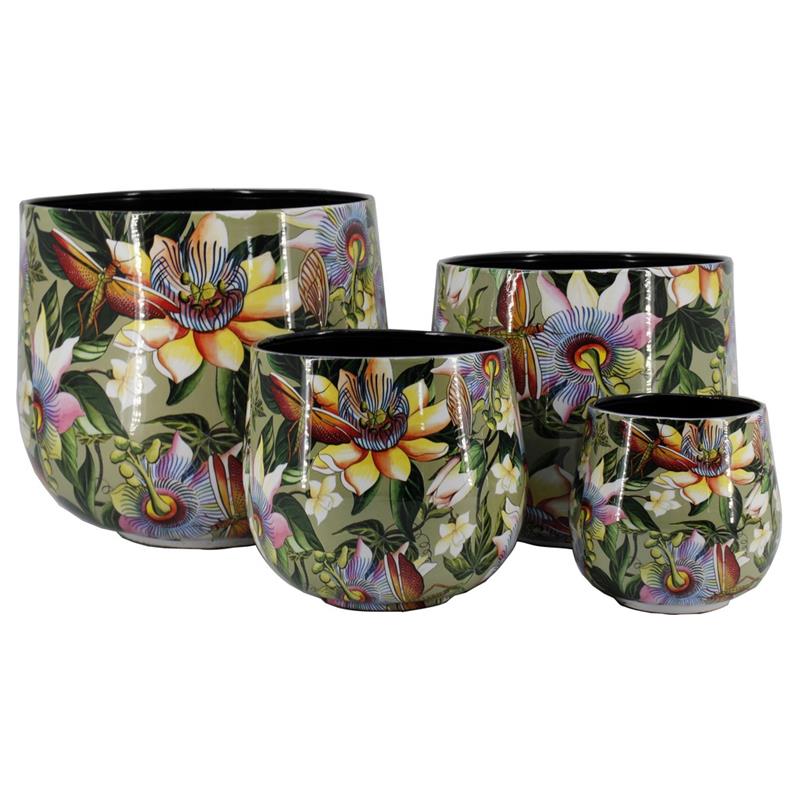 Ga je mee naar Griekenland? Of haal je de romantiek in huis met de metalen serie Corfu van Floran. De metalen series zijn in diverse maten verkrijgbaar. Met de afbeelding van prachtige tropische bloemen is dit een mooie aanvulling in elk interieur. Deze set bestaat uit potten met de volgende binnenmaten: 12cm, 19cm, 25cm en 29.5cm.