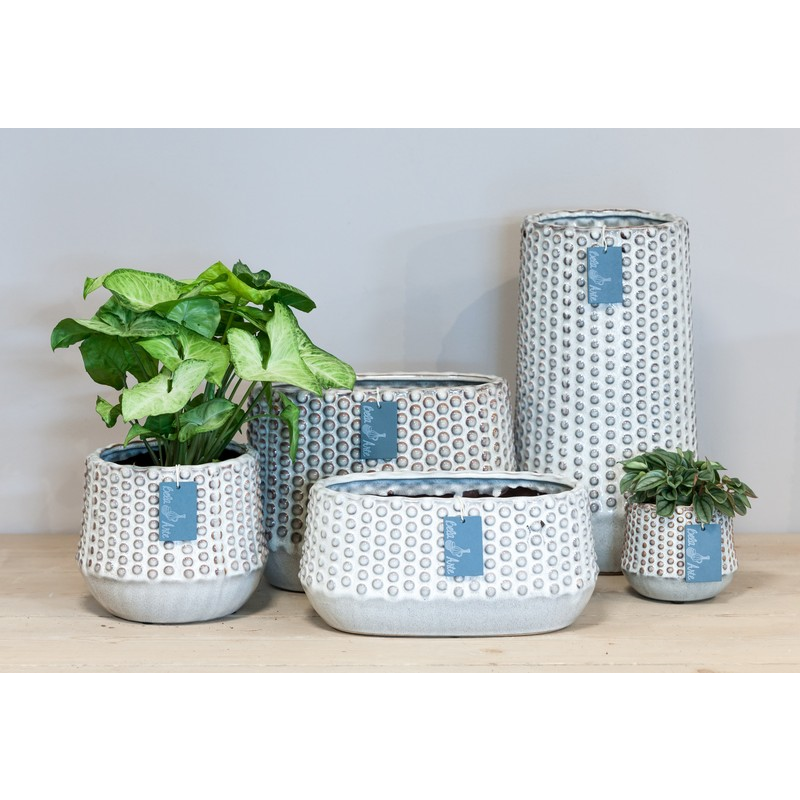 Planten geven kleur aan het interieur en dragen bij aan een ontspannen sfeer. Met de juiste bloempot laat je jouw planten extra goed uitkomen! Plaats potten in verschillende kleuren, maten en hoogtes bij elkaar voor een levendig effect. De fraaie serie Dot van Bela Arte is voorzien van een patroon van stippen, wat de pot een vriendelijke uitstraling geeft. Ontdek ook de andere varianten uit de serie Dot en combineer ze met elkaar voor een strak en stijlvol geheel. De bloempot Dot is gemaakt van keramiek is verkrijgbaar in de kleuren wit en brons. De bloempotten worden met de hand gemaakt. Hierdoor zijn ze allemaal uniek en kunnen dus iets afwijken qua kleur en afmeting.