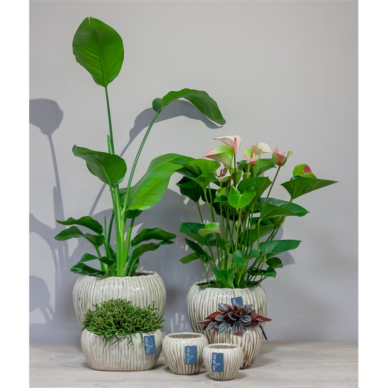 De prachtige potten serie Gent uit de Floran collectie is een echte aanwinst voor in jouw interieur.De pot is erg stijlvol en van aardewerk gemaakt. De bolvormige Gent heeft een mooi verticaal streeppatroon. Gent is verkrijgbaar in 8 maten ronde potten maar ook in 2 ovale uitvoeringen.