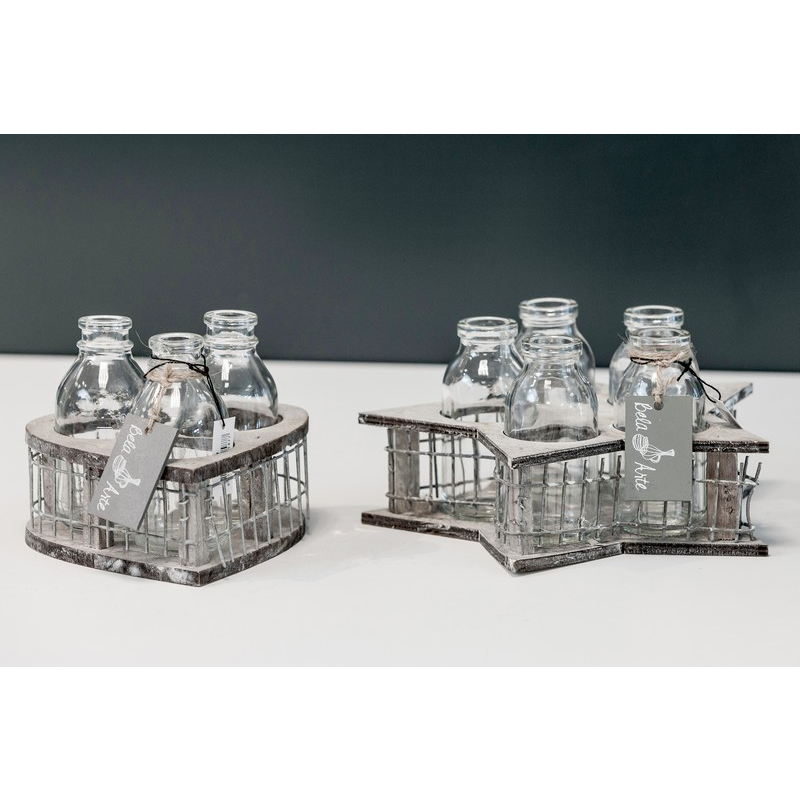 Zoekt u een leuk item van hout, stro, bamboo, ijzer of glas dan bent u aan het juiste adres. Voor elk plekje in huis is wel een geschikt artikel te vinden, de spreekwoordelijke finishing touch. Leuk om te geven nog leuker om te krijgen. De afmetingen van het flesje van dit model zijn 11 cm x 5 cm en de binnendia is 1.8 cm.