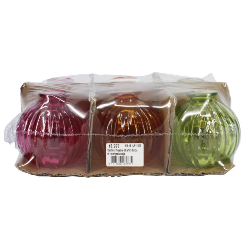 Bolfles Theems van Floran heeft een afmeting van D3.5/8.5 H8.2cm is verkrijgbaar in een assorti van 3 kleuren, roze/geel en oranje. Ga voor eenheid met een set vazen in dezelfde kleur, of kies voor een kleurrijk geheel door te combineren.