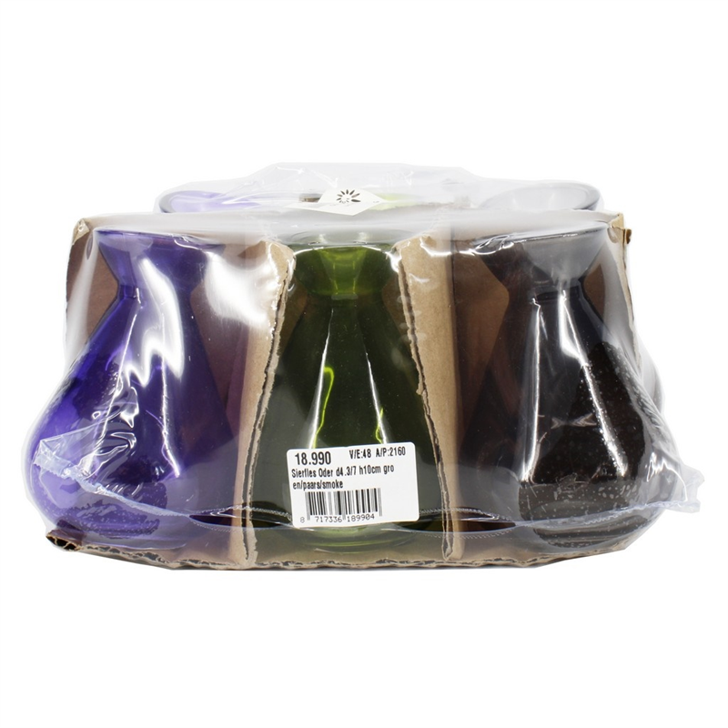 De fles Oder van Floran is een kleine kleurige decoratieve fles met afmeting D4.3/7 H10cm. Verkrijgbaar in de kleuren groen, paars en smoke; een mooie aanvulling in uw winkel!