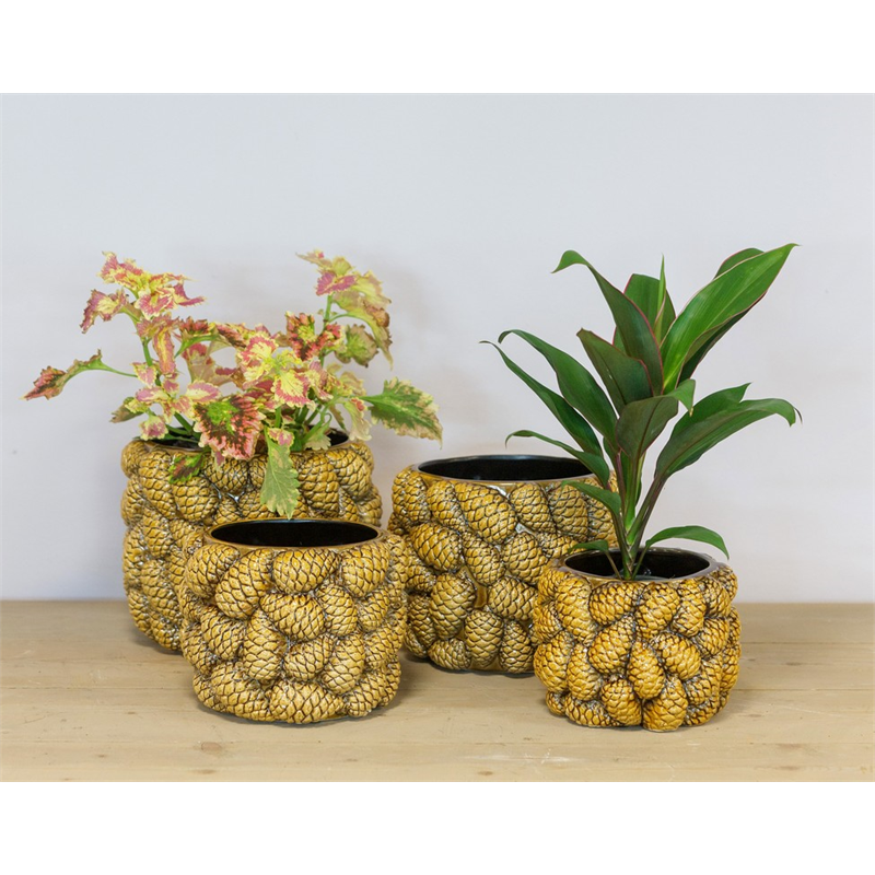 De pot Dennenappels uit de Bela Arte collectie van Floran is een echte eyecatcher die je interieur direct meer klasse en gezelligheid geeft. Perfect voor een stijlvolle en warme inrichting! Verrijk je interieur met deze prachtige keramische pottenserie rondom gedecoreerd met dennenappels, uitgevoerd in een mooie bruine kleur. Deze veelzijdige pot is niet alleen een decoratief kunststuk, maar ook perfect om te vullen met planten, kunsttakken of een kunstboeket naar keuze. Met zijn elegante en tijdloze uitstraling trekt deze pot zeker de aandacht en voegt een vleugje verfijning toe aan elke kamer in je huis. Gemaakt van hoogwaardig keramiek, combineert het duurzame kwaliteit met een stijlvol design.