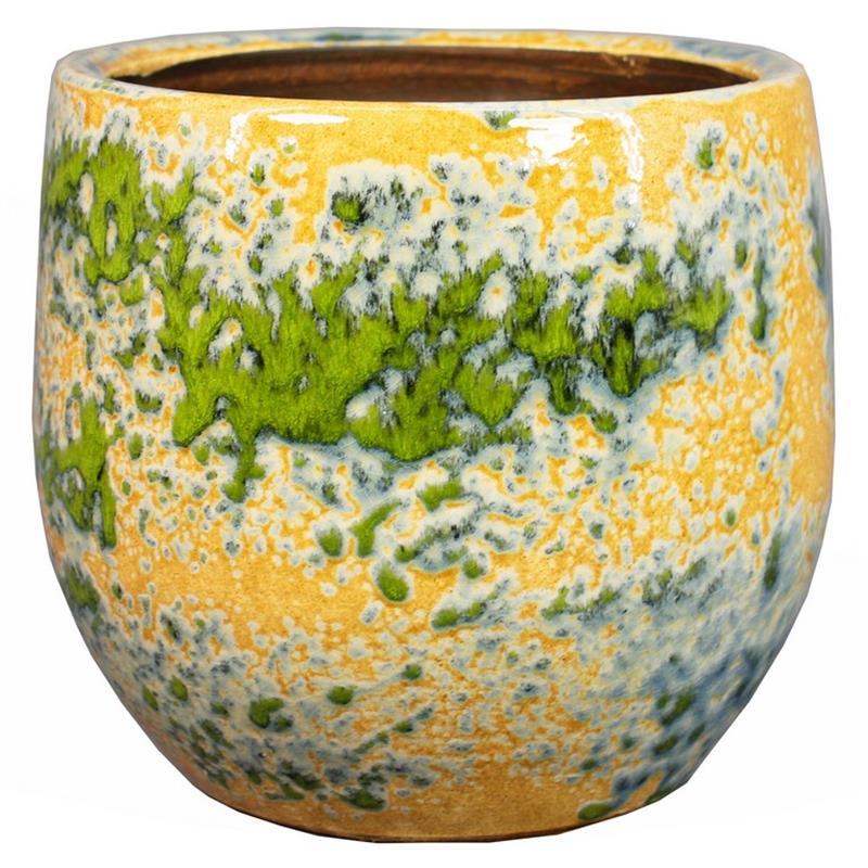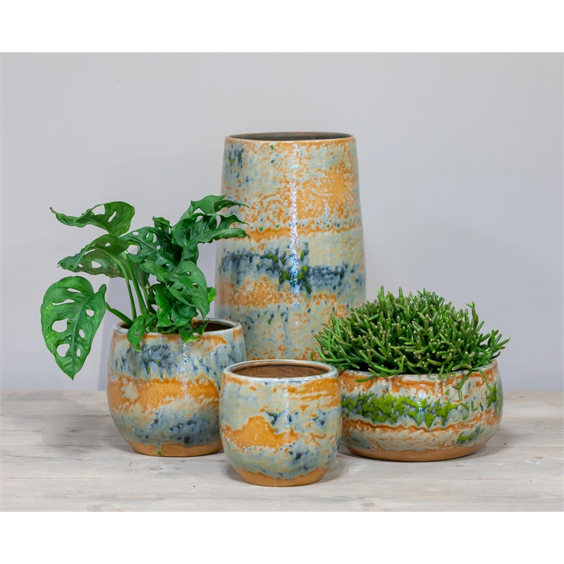 De serie Samoa van Bela Arte siert uw interieur. De kleurencombinatie en het patroon zorgen dat deze serie een echte blikvanger zal zijn in huis. Met een paar mooie groene planten erin is de bloempot onmisbaar in elk interieur! De serie Samoa bestaat uit 5 maten potten, 2 vazen, 2 schalen een jardinière en is verkrijgbaar in de kleuren groen, oker en bruin. De bloempotten worden met de hand gemaakt, hierdoor zijn ze allemaal uniek en kunnen dus iets afwijken qua kleur en afmeting. Deze bloempot is mogelijk niet volledig waterdicht, we adviseren daarom het gebruik van onze inzethoezen.