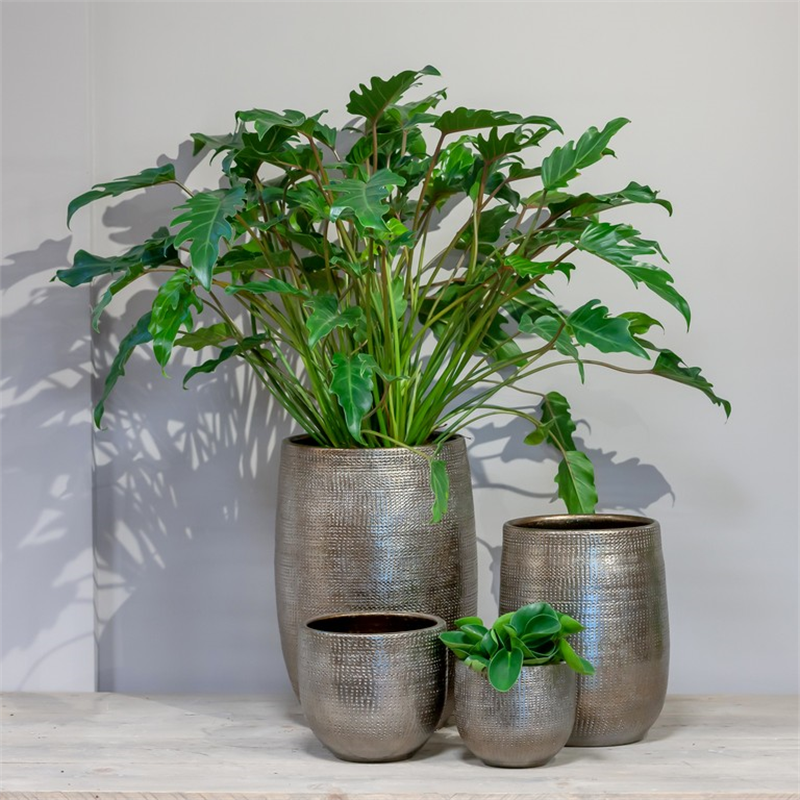 Geef je interieur een luxe uitstraling met een pot uit de serie Dali van Floran. Deze ronde pot is de perfecte blikvanger in je interieur. De pot is goud van kleur en dus mooi te combineren met andere potten. Het artistieke patroon maakt de pot uniek. Het is aan te bevelen een plant te kiezen die een kleinere potmaat heeft dan de potmaat van de bloempot. Deze bloempot is mogelijk niet volledig waterdicht. Vul daarom voor de zekerheid de bloempot met een inzethoes van Floran of zet de bloempot op een schotel. De serie Dali bestaat uit 6 maten potten, 2 maten vazen en 2 maten ovaal.