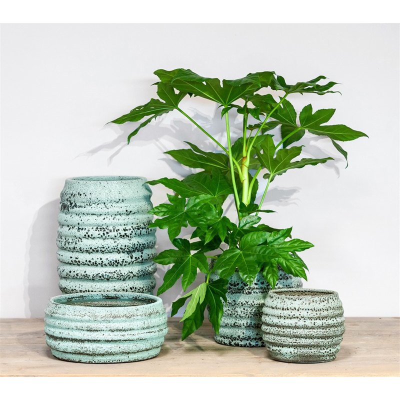 De bijzondere afwerking van de rondvormige serie Vulcano uit de Bela Arte collectie van Floran springt direct in het oog. Vulcano heeft namelijk een unieke textuur die voor een leuk motiefje zorgt. Erg mooi in combinatie met de aardse en neutrale kleur die door de kleur zelf gemengd zijn. Hierdoor is de pot een goede aanvulling op elk interieur. Heb jij er al een plek voor gevonden? Vulcano is gemaakt van cement en verkrijgbaar in verschillende kleuren en maten. Het kan zijn dat de aardewerk pot Vulcano niet helemaal waterdicht is daarom adviseren we om er één van onze inzethoezen voor te gebruiken.