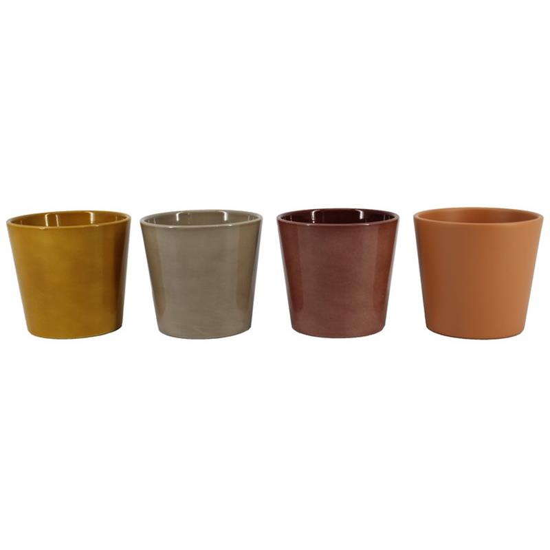 Pot Maud van Floran heeft een wat wijdere uitlopende authentieke vorm en is als display verkrijgbaar in de kleuren grijs, merlot, oker en toscane. De afmeting is D13,5 H12,5 cm.