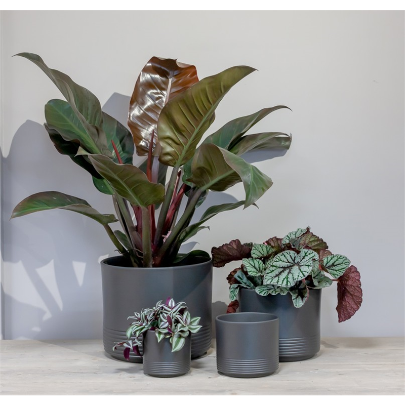 Een tijdloze basic die past in elk interieur; de serie Rille uit de Bela Arte collectie van Floran is een echte bestseller en weet in elk huis wel een plekje te vinden. Deze bloempot valt doorgaans goed in de smaak en past in elk huishouden. De sterke finish laag maakt de pot erg stevig. De serie Rille is rond en heeft onderaan een reliëf van horizontale strepen , Rille is te verkrijgen in de kleur antraciet mat en uin diverse maten. Kies en combineer!