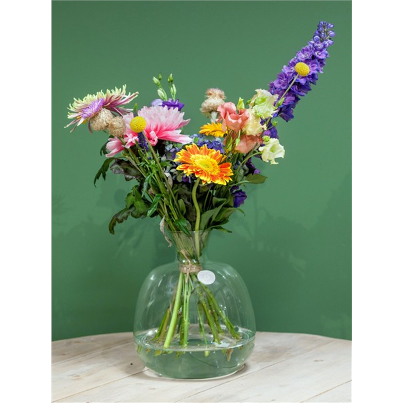 Dit item is speciaal gemaakt om gevuld te worden met bloemen. Of het nu gaat om een grote bos of een subtiele hangplant, dit item laat uw planten volledig tot zijn recht komen. Het ecoglas van Floran wordt geproduceerd uit gerecycled glas, het glas wat iedereen naar de glasbak brengt. Doordat er altijd een beetje vervuiling in gerecycled glas zit kun je wat meer oneffenheden zien, wat elk item uniek maakt. Ook is dit glas niet helemaal helder en lijkt het een blauwgroene gloed te hebben. Geweldig toch hoe dit proces werkt? Geen verspilling en mooie, bruikbare producten!